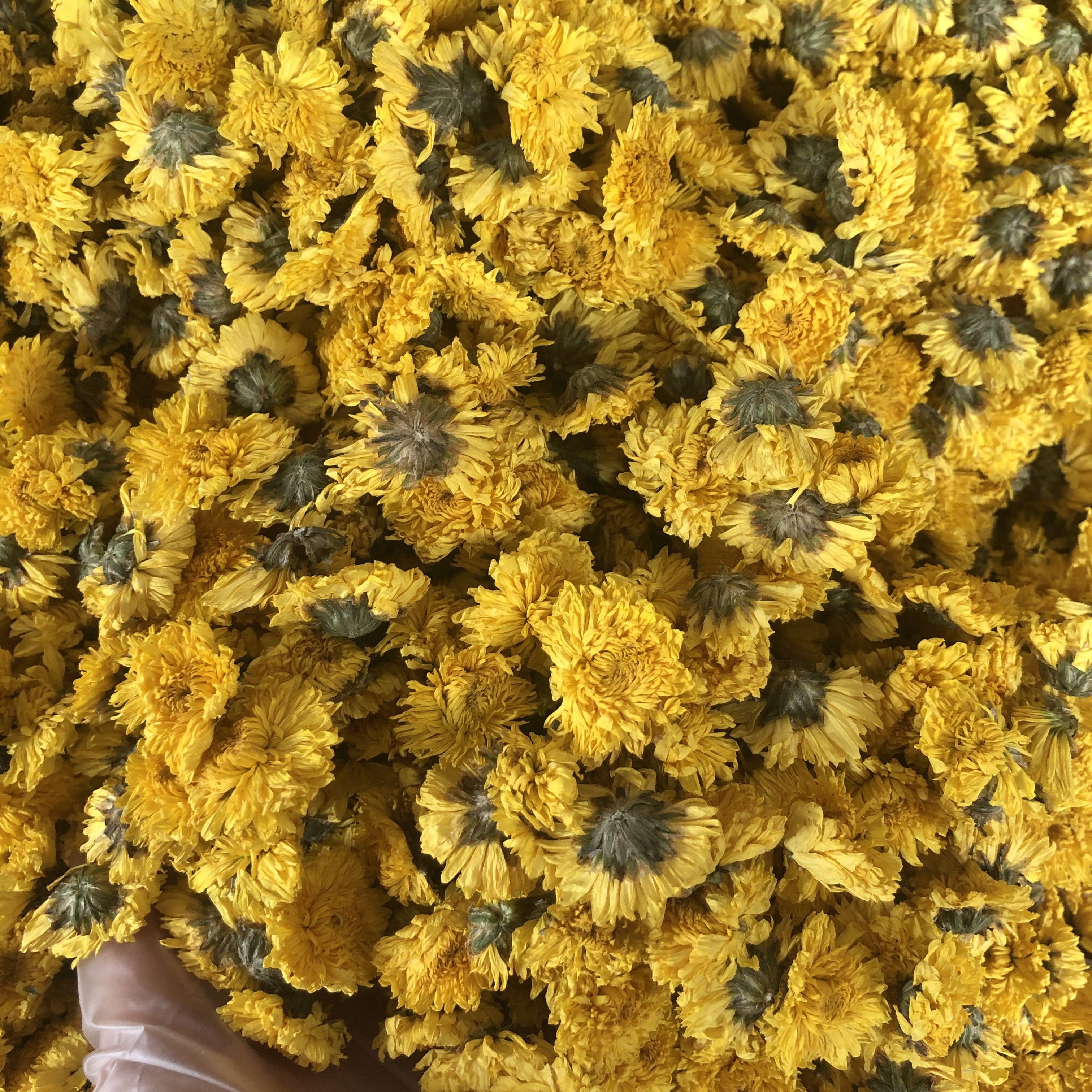 Wuyuan Imperial Chrysanthemum, known in Chinese as "Wuyuan Huangju," is a variety of chrysanthemum that is particularly renowned for its large, golden yellow flowers. This type of chrysanthemum is named after Wuyuan, a county in the Jiangxi province of Eastern China, where it is extensively cultivated due to the region's ideal climate and soil conditions for growing the plant. The Imperial Chrysanthemum is celebrated for its high ornamental value and is often used in floral arrangements or as a decoration in public and private spaces.